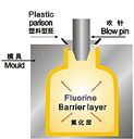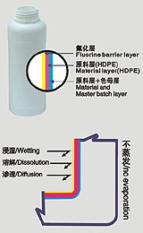 氟化瓶是在普通HDPE塑料瓶的制造過程中增加了一道氟化工藝,用氟、氮混合氣體在特殊吹塑設(shè)備上進(jìn)行吹塑,使得經(jīng)過氟化處理的容器壁比未經(jīng)過氟化處理的容器內(nèi)壁上多了一層以PTFE(聚四氟乙烯)為主的物質(zhì),與普通塑料瓶相比,氟化瓶能有效防止有機(jī)溶劑的滲透和產(chǎn)品降解。是您盛裝農(nóng)化、香精香料、食品、油墨助劑及其它化工產(chǎn)品的首選。